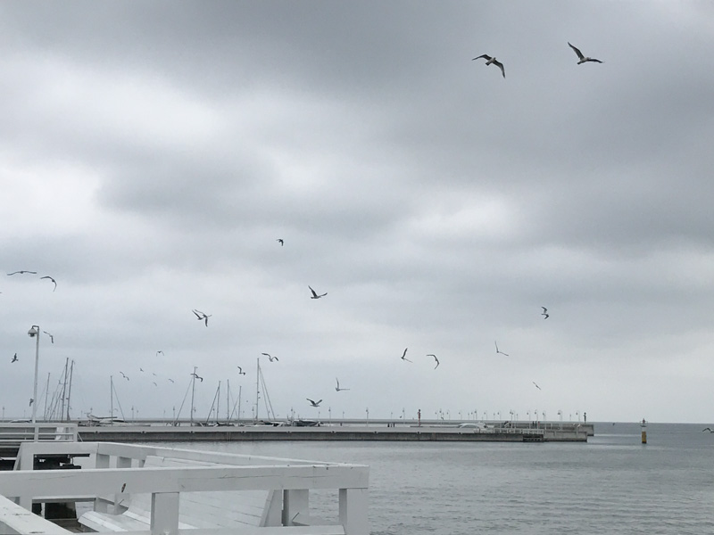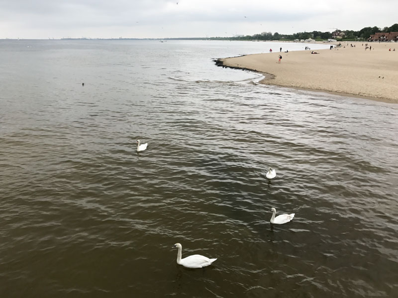 木棧道兩側有許多度假飯店,而旁邊也能見到許多天鵝,沙灘的地方也有很多再那散步休息。 不過,大概是因為靠海,這邊的海鷗實在超級無敵多多多多多,有些海鷗又很愛突然俯衝,當下真的蠻害怕被海鷗突然撞上..