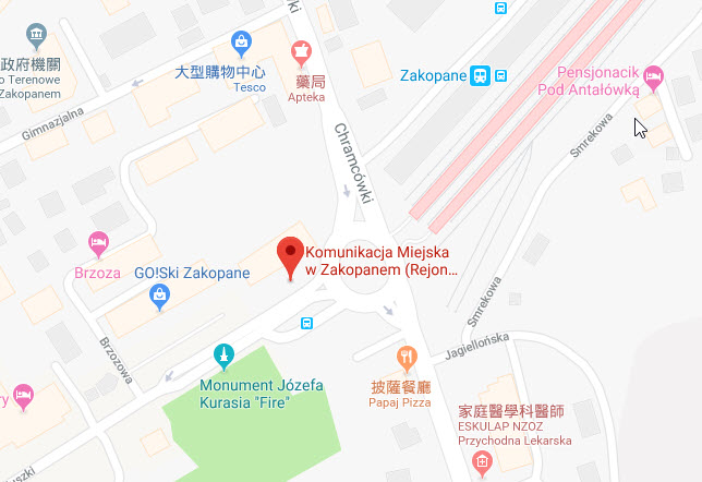從 Zakopane Rejon Dworców 公車站搭 Żółta Linia 的 MINI BUS 到 Zakopane Kuźnice 站