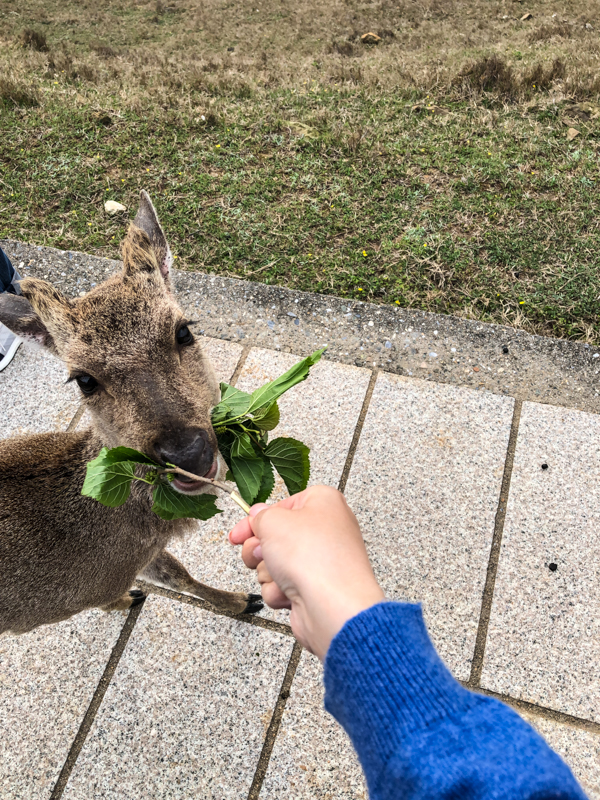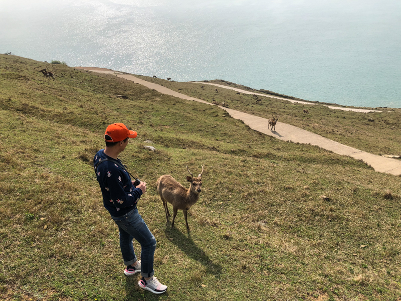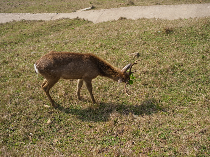 島上的鹿,怕人也不怕人;完全取決於手上的鹿草量,有草時你會覺得自己被萬「鹿」擁簇。有些公鹿比較兇悍一點的甚至會站起來用前腳踢你,建議大家不要看到鹿就很興奮的衝上去。記得把鹿草舉高過頭,否則鹿群衝過來一陣混亂後就會發現雙手空空,鹿草全部被吃光光了唷。(其實,奈良的鹿也是如此。看到鹿餅就成群結隊的蜂擁而至,眼睛惡狠狠地盯著各位手上的鹿餅。)