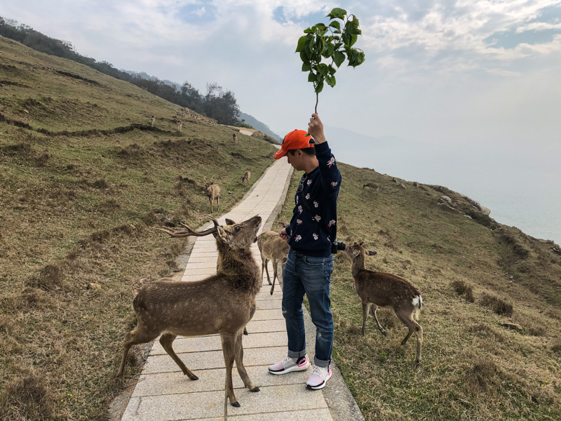 以 Chai 身體力行的經驗,遇到一隻可能餓了七十八天的公鹿,從小徑一路跟到山坡上就是不放棄我手上的鹿草。最後,Chai 只好把手上的鹿草都給了他,沒想到這位仁兄似乎在不滿足的情況下鬧脾氣。前腳一瞪兒,整隻鹿像人一樣用後腳站了起來並用前腳來踹 Chai。基於愛護動物的立場,Chai 只是閃開鹿的攻擊作勢反擊,鹿也就悻悻然地離開。